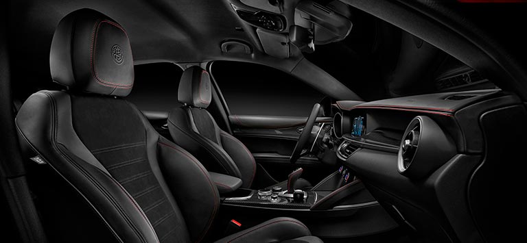 Refined elegance and passionate spirit give life to the top-of-the-range Giulia and Stelvio Estrema. Blurring the lines of man and machine through true synergy with it’s racing soul, Estrema creates a unique symbiosis between driver, car and road, underlining Alfa Romeo’s noble sporty nature that dates back to 1910.